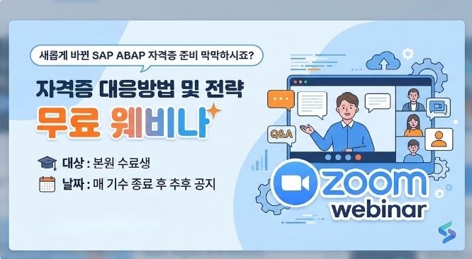 혼자 준비하기 막막한 SAP자격증 대응 방법 및 전략 웨비나를 수강생 대상으로 무료제공 합니다.
